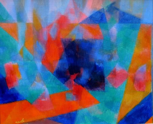 Dans ses toiles irisées, le sujet voisine avec le non-sujet, car l’artiste parvient à séparer le réel de l’imaginaire. Une force poétique vient se mêler à l’ensemble. A ses heures perdues, Daniel Ravel, dans un coin de son atelier – comme celui qu’il eut dans cette zone frontière de ce nord-ouest parisien, avenue Emile Massard,– rêvait autant qu’il peignait. Ici, tout près de l’avenue Stéphane Mallarmé, il composait des poèmes dans sa tête de doux songeur. Il nous laisse ainsi également une autre part de lui-même.