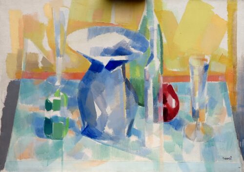 Chez Ravel, les sujets sont variés. Quelques portraits existent, mais surtout des paysages, et encore davantage des natures mortes. Le tableau interroge. N’est-ce pas là un toit, une route, un horizon ? N’est-ce pas là une carafe, une bouteille, un vase ? Il faut se laisser aller face à cette sensation pure qui se dégage des formes étalées sur la toile. A l’une de ses peintures, l’artiste a donné pour titre : « Les objets attaquent la couleur ». Dans cette « attaque », on ne sait qui l’emporte.